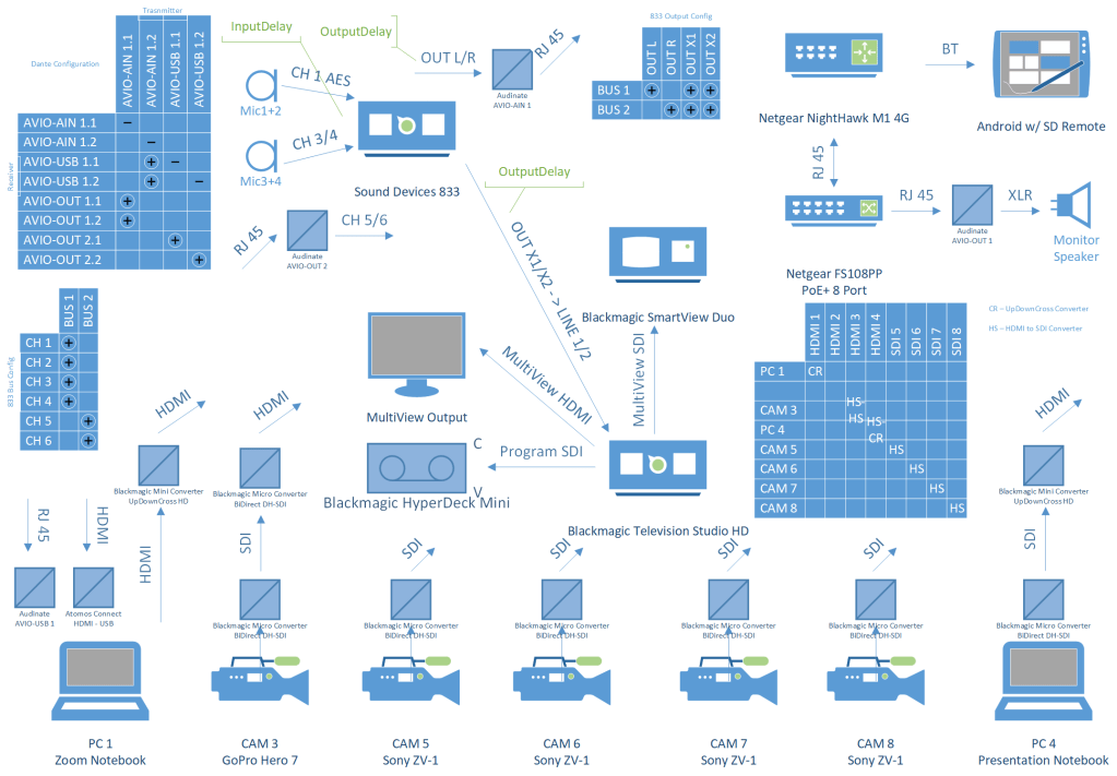 So I checked with the requirements of the band and agreed to be there the next day to set everything up. As a preparation, I came up with a small wiring plan which largely looked like this: